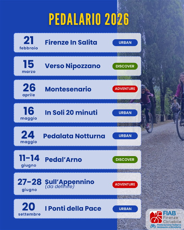 Il 2026 è appena iniziato ed è già online il Pedalario provvisorio 2026 di FIAB Firenze Ciclabile!