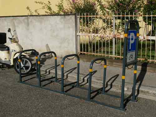 Provo sempre piacere nel ripassare dove avevo incontrato una rastrelliera derelitta, la numero 11, e ritrovarla rinnovata, nel corpo metallico e nello spirito. Da rottame trasformata in un nuovo nido accogliente per le biciclette dei ciclisti di passaggio: da bruco a farfalla. Stavolta tornare in via Coppo di Marcovaldo è stato piacevole e sorprendente: evviva!