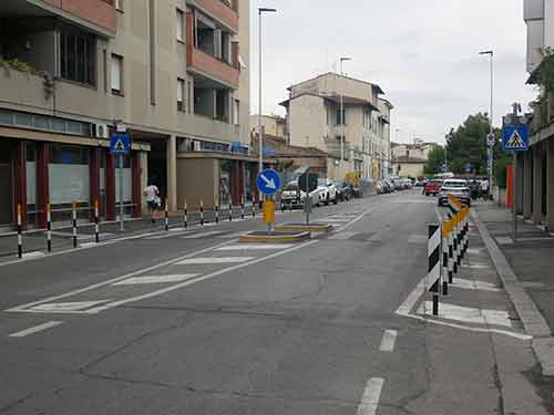 Nelle scorse settimane ho notato che in via del Pollaiolo è stato installata un’isola pedonale per proteggere l’attraversamento della strada. Sono stati tolti alcuni posti auto ed è stata ristretta la sezione stradale, per costringere le auto a rallentare su una strada che non rientra nella zona 30. Ottima scelta, tanto più che si tratta di una strada su cui si affacciano numerosi negozi e abitazioni. Mi chiedo quindi il motivo per cui in altre strade su cui è vigente il limite di 30 km/h (esempio: via Modigliani/via Massa) non siano ancora stati installati sistemi di moderazione del traffico che facciano rispettare il limite, anche senza bisogno di multe.