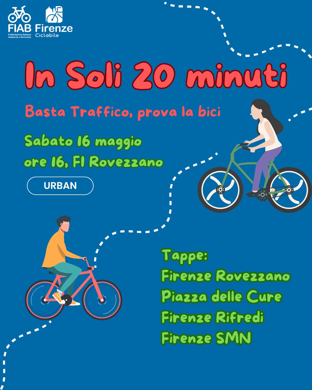 La bici ha vinto il Gran Premio della Città di Firenze: veloce, pratica e conveniente! Con questa pedalata vogliamo dimostrarlo insieme, testando tre percorsi quotidiani di circa 20 minuti, in gran parte su piste ciclabili.